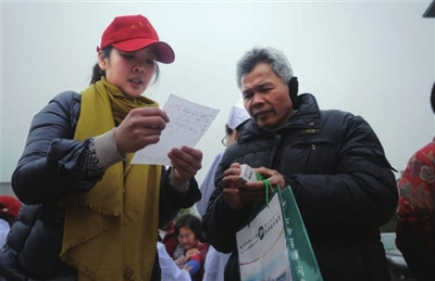 得知药品是免费的,大爷乐呵呵地跟同伴说道:“昨天喉咙不舒服,准备去买药的,今天就有专家义诊,还免费发药,真好。”
