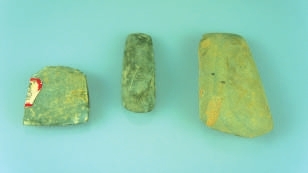 据徐刚介绍,尧家林试掘出土的生产工具有两种,一种是石质的,一种是陶质的。石器质料多采用灰绿变质板岩,砂岩,一般遍体打磨,直到光滑,少数打磨兼制。网坠系用卵石片两侧打制成缺口而成,陶制工具仅纺轮一种。