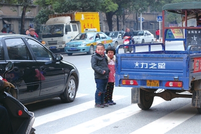 中午11时50分,南门小学开始放学。记者看到,大部分学生由家长领着,走过这处人行横道,只有一些年龄稍大或有同伴相随的学生,才自行穿过马路。