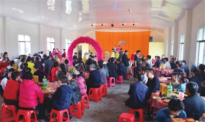 曾经在小礼堂内办过酒席的佘和仙说道,红白喜事总要有地方招待一下亲朋好友,人多了吃饭自然成难题。就是在自己家里招待,桌椅板凳碗筷也得到各家去借。