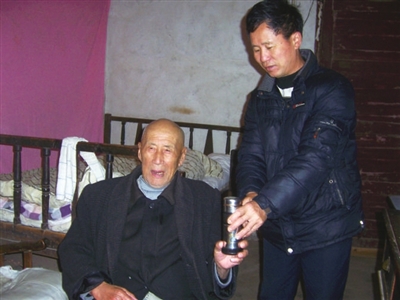 鲍华阶现在已是92岁高龄了,一天三餐都是范兴奎把饭做好了,然后再叫鲍华阶老人吃饭。