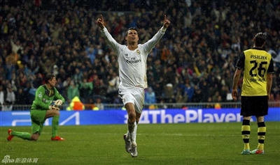 但皇马队中真正的焦点仍是C罗,这是他的欧冠第一百场比赛(不计资格赛),他当然要用进球为自己的百场献礼。第57分钟,莫德里奇外脚背将球送入禁区,C罗停球顺势趟过出击扑救的魏登费勒,在门前8米处左脚推射入网。这是他打进的个人本赛季欧冠第14球,追平了梅西、阿尔塔菲尼共同保持的欧冠单季进球纪录,按照C罗目前的状态,改写欧冠单赛季进球纪录只是时间问题。而C罗欧冠总进球数也达到了64球,排在劳尔(71)和梅西(67)之后。此役之后,C罗代表皇马连续10场比赛取得进球,计入一场代表葡萄牙的友谊赛,C罗更是已经连续11场各项赛事进球。比赛第80分钟左右,C罗身体不适,此时安帅将C罗换下。赛后安切洛蒂解释说:“他的膝盖有点小问题,但是我不担心,他没有受伤,只是不舒服。我换下他是为了避免他受伤,因为我们需要更努力防守,我把他换下让他休息。我对C罗不担心,我比较担心第二回合,多特蒙德是一支很有实力的球队,他们会争取翻盘。”