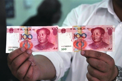柜员王静介绍,10日早上9时许,一名老汉在来到柜台前称要存款。经了解,老汉姓翁,今年64岁,要存款15400 余元。当她接过钱按照操作流程进行验钞时,却发现其存款中有76张百元是假钞。“61张冠字号码为同一号码的NH37480645和15张同号码的PS12813201。”王静说,随即她将此事向上级领导汇报,并告知翁老汉其存款有部分假币,按照规定需要收缴。
