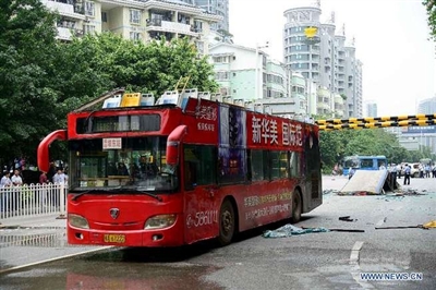 新华网消息15日上午11时左右,南宁一辆双层公交车行驶至竹溪大道青竹立交桥底时,与桥架限高防控架相刮,造成双层公交车顶脱落,导致公交车上乘客28人受伤。