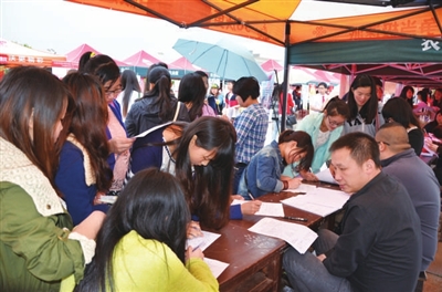 19日,咸宁职业教育(集团)学校2014届毕业生供需见面会在该校广场拉开大幕,来自湖南、广东、福建、北京、上海、江苏、浙江、陕西、江西、湖北等省市的60余家医疗、医药机构及企业进场招聘,共提供技术和管理岗位800余个。见面会当天,1500多名毕业生进场应聘,近千名毕业生当场和用人单位达成签约意向。 (姜明助 刘宏平)