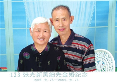 青梅竹马、两小无猜,一晃过去了6年:一个长成了亭亭玉立的勤劳女子,一个变成学有所成的才俊少年。一切都是顺理成章,张光鑫和吴细先带着甜蜜的爱情走进了婚姻。1956年农历七月初八,两人到大桥乡政府领了结婚证,并获赠一张2斤猪肉票。挪用他人的床铺、排夜队买肉七斤、旧衣柜桌椅将就用……没有隆重的婚礼,没有豪华的婚宴,两人用“简单”两字完成了人生一件大事。