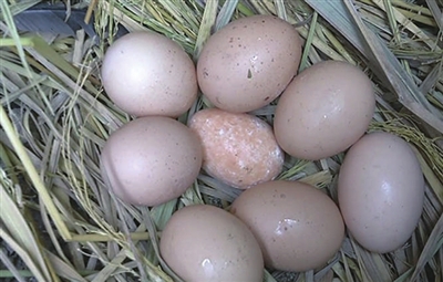 官桥镇朱砂村5组村民蔡光木说,他每隔两三天就到鸡窝里捡蛋。前几天,他发现鸡窝里有一个奇怪的鸡蛋。
