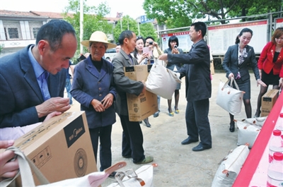 昨日,市工商局携手玫琳凯湖北分公司开展爱心帮扶活动,为咸安区贺胜桥镇贺胜村26户70岁以上的空巢和孤寡老人送去电扇、空调被等清凉物资,温暖了老人们的心。(毛亚轩冯伟/摄)