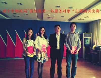 6日,市交通物流发展局举行“假如我是服务对象”演讲比赛,来自局机关各科室的9名选手登台演讲。他们结合自身岗位工作实际,畅谈与服务对象进行换位思考,从而提高服务质量方面的体会。(图为获奖选手合影)童行/摄