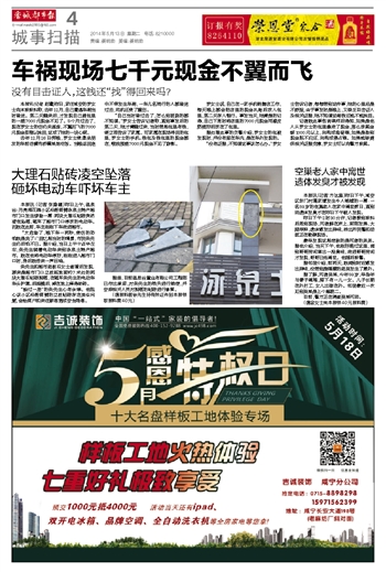 大理石贴砖凌空坠落砸坏电动车吓坏车主