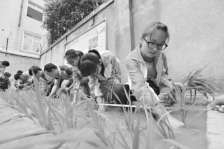 5月12日,武汉市第四十九中学校高二(2)班生物课上,在王家太老师的指导下,18名学生学着插秧。“生物课中的一些内容,我讲过无数次,画图、播放片子,学生们都没法理解。这次让他们亲身插一次秧,一下子就明白了。”王家太说。