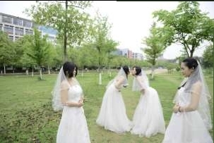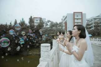 “我们都是参照网上的风格设计主题的。”小船(化名)是湖北科技学院教育学院美教班的应届毕业生,此前她和班上要好的三个女同学,在校园内拍摄了一组毕业纪念照。为了这组婚纱照,她们已经期待了很久。