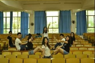 首先,来到曾经上过课的教室,男女同学在黑板上写下自己毕业临别前最美好的祝福,或者一众向前倾,或者同时摆出最惊悚夸张的表情。同学间七嘴八舌的笑声在偌大的阶梯教室里回荡。