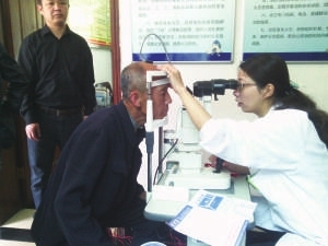 近日,咸宁爱尔眼科医院的医师来到温泉办事处希望桥社区进行义诊,为居民提供免费的视力检测和白内障筛查。100多位居民免费接受了视力检查和咨询。 (记者 吴青朋 通讯员 郑学进)