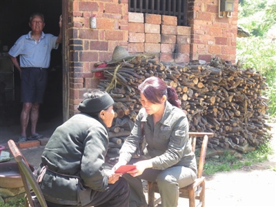 熊振一边亲切询问老人的日常生活和身体状况,一边从兜里掏出一叠钞票,“左婆婆,这个是我个人的一点心意,请老人家接受。”老人开始怎么都不肯接受捐助,熊振继续劝说:“您老人家就接着,您看,家里不是还有生病的儿子吗?您就算不为自己想,也得为孩子想想啊!给自己和孩子买点吃的穿的吧!”老人老泪纵横,紧紧抓住熊振的手说:“你们供电所都是好人啊,一次又一次地帮助我这个老婆子。”“不用谢,这都是我们应该做的,以后有什么困难,可以随时找我们,我们随叫随到。”