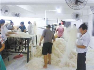 近日,一组题为“东莞某米粉厂现场实拍”的照片在网络广为传播,画面中车间工人赤脚踩着米粉,甚至在米粉堆上睡觉……网友直呼“令人作呕”,将其戏称为“臭脚米粉”。 (新华网)