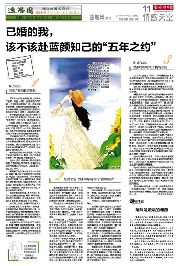 首先要说明的是,我已步入婚姻,而且丈夫田吉和蓝颜知己乔叶还一度是“竞争对手”,只不过他一直不知道而已。