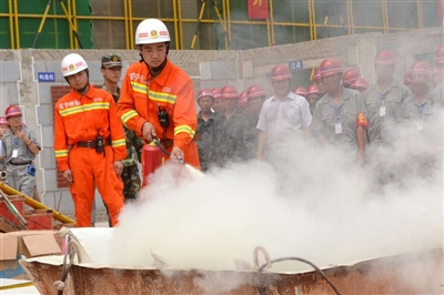 18日上午,我市在湖北工业大学商贸学院项目部(咸宁职教园区)开展消防应急救援演练,旨在进一步加强安全生产工作,有效预防和减少在建的工程项目发生火灾事件。 周阳何虹/摄