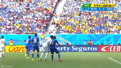 比赛第80分钟,乌拉圭队前场发动进攻,禁区内的苏亚雷斯与基耶利尼抢位时发生身体接触,接着令人惊讶的一幕出现了,苏亚雷斯拽着基耶利尼的左臂,接着用自己的嘴咬了基耶利尼的左肩膀。突然受到袭击的基耶利尼痛的倒在了地上,而苏亚雷斯则相当狡猾的同时捂脸倒地,仿佛两人是在碰撞了之后同时到倒地一样。而从结果来看,苏亚雷斯的确又胜利了,他骗过了主裁判的眼睛。