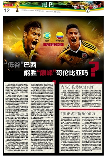 “低谷”巴西 能胜“巅峰”哥伦比亚吗