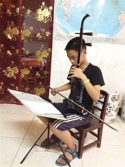 吴锦琦最初接触二胡是2010年的暑假,外公虽然是他的启蒙老师,可外公作为长辈对他的宠爱,让吴锦琦有时完全不听指挥。“一拉二胡就头晕。”吴锦琦回忆当时的情景,做什么事都愿意,就是不想拉二胡。