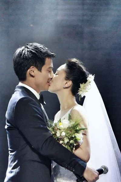 周迅则说:“我们今天非常开心,可以在这个充满爱的氛围里,把我和我丈夫的爱融合在一起,跟大家分享,我演了一些电影,演过几次新娘,在电影里说过几次誓言,今天晚上,终于有个周迅的版本可以说这个誓言。”