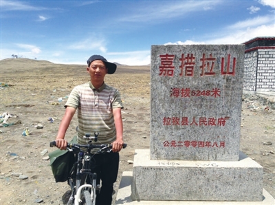 杨林晓赤壁人,是一名铲车司机。至今未婚,单身一人的他,无拘无束,最大的爱好就是骑自行车旅游。去年6月,杨林晓开始了自己的骑行之旅,先后骑行去过云南、西藏、海南等地。一路走来,杨林晓克服了当初的孤独、恐惧,充分感受到了骑行的魅力。