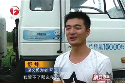 据悉,舒炜是一名退伍军人,今年6月1日才到庐江县,后通过应聘,在该县城管局深圳市升阳升清洁服务有限公司当一名洒水车司机。