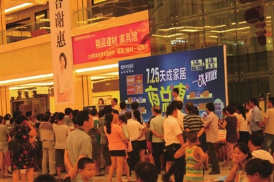 【提要】 7月25日,天成家居为咸宁人民奉献了一场夜宴盛惠,引爆了咸宁消费者的消费热情,在今年整个家居行业被认定的销售淡季中,天成家居创造了一个又一个奇迹。家居超值卡、免费量房设计、千款名品一口价、折后最高返5%、联购派现金红包,等多重优惠,惊喜不断!吸引了近千名来自咸宁市区及周边县市过来的市民,活动当天成交额突破500万,印证天成家居鄂南地区首席卖场的地位。接近凌晨时分,天成家居两栋卖场的灯光才逐渐熄灭,这场牵动了咸宁人民近一个月关注目光的倾城夜宴终于圆满落下了帷幕。