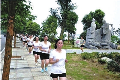 日前,嘉鱼县茶庵信用社员工进行集体晨跑。响应县政府开展全民健身的号召,该社成立羽毛球队、晨跑队和广场舞队等,组织员工集体健身,增强职工凝聚力。 杨惠春蒋笋/摄