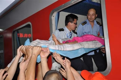 昨日下午7时30分,从云南地震灾区昭通送往宜宾的首批32名伤员乘坐火车专列抵达宜宾火车站后,立即被送往宜宾市第二人民医院接受进一步治疗。据悉,这是鲁甸地震后送往外省治疗的首批伤员。