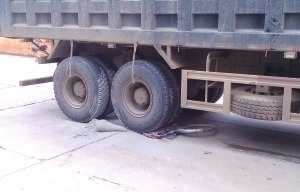 据附近商户介绍,骑自行车的男子在附近买了一包水泥装在后座上,在路口被一辆大货车挂倒,连人带车被卷入车底。事发时,可能处于司机的视线盲区,男子被拖行了3米左右,货车司机被路人提醒才发觉。目前,交警正在调查事故原因。