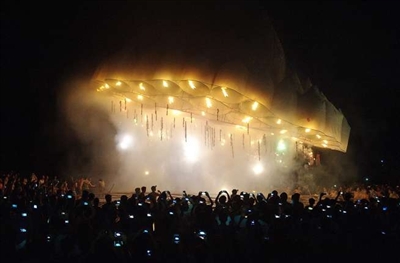 8月18日,海南省琼海市万泉镇红岭村村民放飞的巨型天灯徐徐升空。当日凌晨,海南省琼海市万泉镇红岭村村民成功放飞一个直径逾40米的捆绑式巨型天灯。这个巨型天灯由62个直径2至4米的小天灯组成,60多名年轻人耗时一周制作完成。该天灯放飞后升至近50米的高空,随风飘移一段时间后烧毁,整个过程持续了约5分钟。据介绍,放天灯是当地群众中元节驱鬼祈福的传统习俗,近年来逐渐演变成一种娱乐活动。 (据新华网)