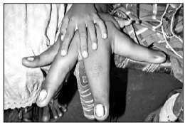 | 印度8岁男孩患巨手症每只手重约8公斤长近半米 |