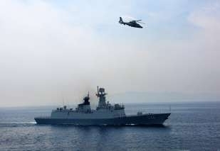10时,由导弹护卫舰盐城舰、临沂舰、大同舰和1艘综合保障船及2架舰载直升机组成的海空编队,分别向预定海域航渡。