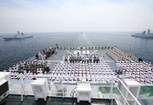 新华网消息 海军昨日在山东威海刘公岛海域举行甲午战争120周年海上祭奠仪式。