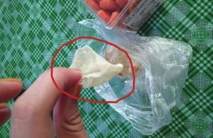 “我看半天才看清是一个橡胶套,回想起这个东西刚才还在自己嘴里嚼了半天,心里顿时一阵恶心,差点吐出来。”曹女士说,现在吃饭一点胃口也没有,脑子里都是那个恶心的东西。