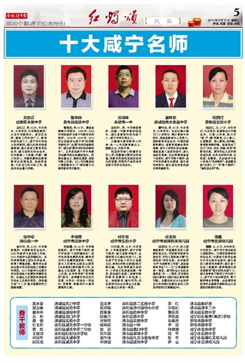 程四红崇阳县实验小学 程四红,女,37岁,本科学历,中共党员,省普通话水平测试员。从教18年来,她力行“爱、严、微”的教育,以心换心,以爱搏爱。悉心耕耘,尚师德,享受教育铸师魂。逐渐形成了自己“求实、求活、有趣、有效”的教学风格。撰写的论文多次获奖或发表,多次主讲研讨课、示范课、竞赛课。先后被评为省小学语文“优秀教师”、省课题实验“先进 |