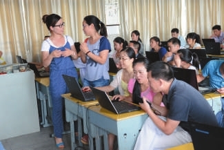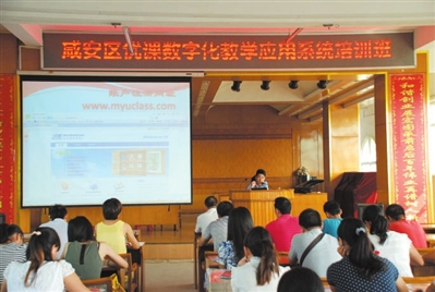 优质资源互联共享改变了“一支粉笔一本书”的传统上课手段,逐步改变了全区中小学校的教学模式。如何管好用好现代化的教育装备,提高教师的应用水平,确保设备发挥最大的效益,是咸安教育信息化发展不断努力的方向。为此,该局建立了区、乡、校三级教师信息技术全员培训制度,每年暑期对教师进行计算机、课件制作、多媒体班班通、电子白板等信息技术培训不少于15天,并记入教师培训档案。三年来,教师信息技术培训人数达3000人次,教师参训率达100%,教师培训考试合格率达100%。全区85%的教师能运用多媒体班班通上课。同时,组织开展各种形式的“现代教育技术应用竞赛”、“英语口语竞赛”、“优秀电子教学课例评选”等活动,教师队伍现代教育技术应用水平不断提升,教师信息技术竞赛成果丰硕,仅2013年,获课件制作、电脑操作、电教论文等信息技术竞赛国家级、省级、市级奖就有625人次。