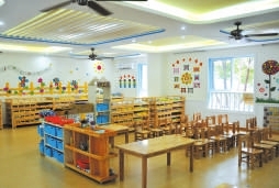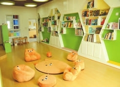 走进一楼大厅,“尊重天性 启蒙心性 让孩子拥有幸福童年”几个大字便映入眼帘。园长说,希望孩子们在幼儿园里,能够快乐地游戏和生活,富有个性地成长,度过幸福的童年。一路参观下来,我们从环境中看到了许多独具特色的亮点:幼儿园以阅读为课程特色,温馨童趣的绘本馆里有一千多册国内外最优质的绘本,每个班级都有阅读区角,在书香氛围的熏陶下,孩子们和书成为了好朋友;体验馆宛如一个甜美的家,孩子们将在这里当家作主,款待自己的好朋友;多功能厅灯光音响齐全,孩子们可以在这里充分展示自己,感受成功的快乐;楼层的设计里还融合了“泉都”、“香城”、“竹乡”的地域特色,不同的色彩,富含寓意的造型,从小让孩子们感受到家乡的美好,激发他们爱家人、爱家乡、爱祖国的情感。连班级的名字也变成了苗苗、朵朵、果果班,预示着孩子们像小苗一样成长、开花、结果。