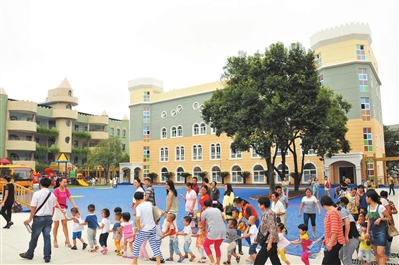 看着焕然一新的校园,带着孙子来报到的莫爹爹忍不住点头。他说,家里有2个孙子在这里上幼儿园,今年开学,他又把小孙子送来了:“这里的老师很有爱心,这里的教育很专业,孙子在这里我很放心!”