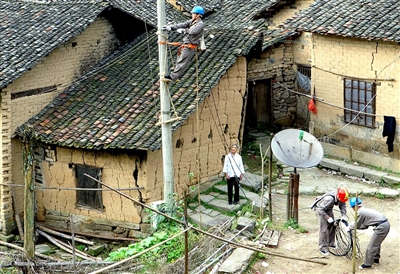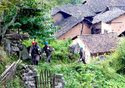 9月7日傍晚,通城县供电公司员工在麦市镇花园村7组为何婆婆家抢修老化断掉的配电线路。