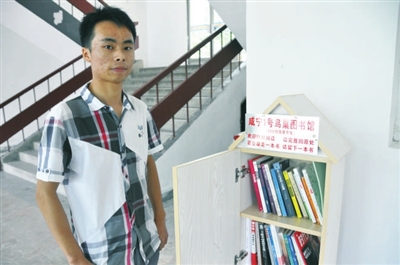 “我一直梦想让更多人能享受到读书的快乐,所以从今年3月份开始,我就计划建造咸宁的‘鸟巢图书馆’。”据该“图书馆”的主要创建者张丁丁介绍,从中学时代开始,他就喜欢读书,每天都要花2-3个小时来阅读,书籍拓宽了他的视野,阅读让他收获了更多知识和快乐。但他通过媒体发现国人读书的时间较少,且咸安校区图书馆内的书籍种类有限,因此他便效仿国内第一座“鸟巢图书馆”,组织同学一同在校园内建造“咸宁1号鸟巢图书馆”,让大家将自己的书籍与人分享。