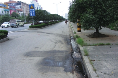 日前,有市民反映,城区长安大道路段一下水沟雨篦口不断涌出污水、污油,臭气刺鼻,过路行人纷纷捂鼻而过。记者在现场看到,汩汩而出的污水、污油积满了水沟,不但有损市容,还影响了市民生活。住在附近的市民纷纷表示,希望有关部门尽快解决这一问题。