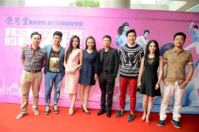 9月13日,我市首部参与拍摄的院线大荧幕商业影片《我的青春蜜友》在市会议中心举行首映式,图为剧组人员合影。赵忠志/摄详见6版