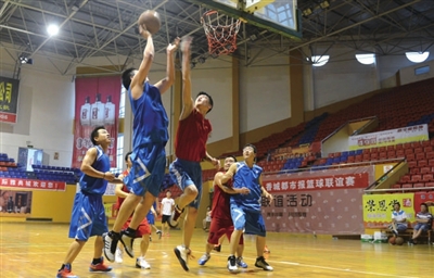 9月12日下午,湖北香泉映月生态旅游发展有限公司与香城都市报篮球队在市区金叶体育馆进行一场篮球友谊赛。赛场上队员挥汗如雨,场外啦啦队呼声高昂。双方不仅切磋了球技,更加深了单位之间的交流。赵忠志/摄