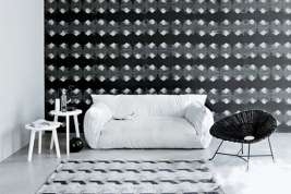 白色的布艺沙发柔软舒适,黑色的几何花纹墙壁抽象现代,带来时尚感觉,编织的座椅和古朴的装饰品打破空间的冷酷感,将空间调和得均衡自然。纯色、几何图案,显然已经打造出一个极具个性的沙发区了。