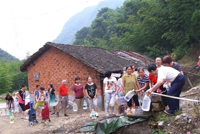 这里一天到晚都有人打水。夏天的清晨4点多钟就有人去打水,退休的老年人大多喜欢早上去打水,上班族的人,通常是下班后,傍晚去打水。 打水的人群中,距离最远的是桂花树小区居民,离山泉约7公里远,来回需要一两个小时。