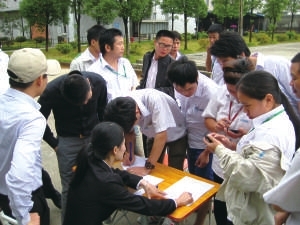 昨日中午,在“桂花树之兴”创新能手大赛光宝科技(咸宁)有限公司报名现场,刚吃完饭的职工把填表处围了个水泄不通,现场报名气氛十分热烈。不到一个小时的时间,现场有50多人报名填表。黄兰芬/摄