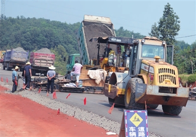 近日,记者在咸潘一级公路施工现场看到,大型设备正在铺设路基,部分路段进入“刷黑”阶段,施工现场如火如荼。